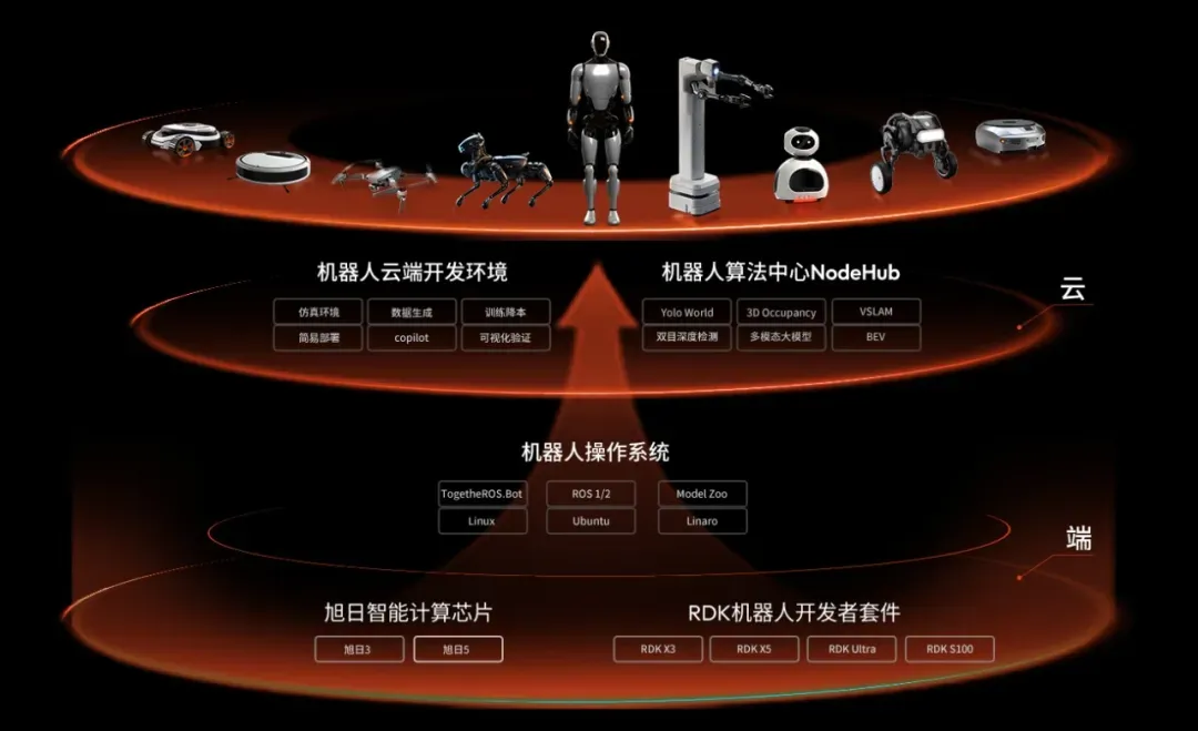依托与地平线技术同源、战略协同的优势,它构建了覆盖芯片、算法到软件的完整产品体系,形成了5~560 TOPS各算力段的完整布局,横向能覆盖人形机器人、四足机器狗等全场景端侧计算需求,纵向能打通技术创新到量产落地的全链条。