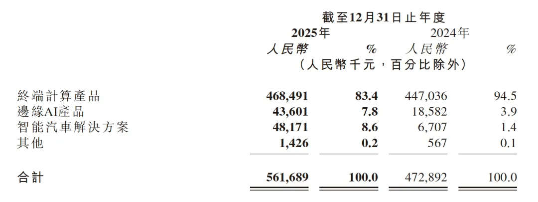 值得关注的是,公司新兴业务的增长势头十分显著。新兴业务主要包括智能汽车和边缘AI推理两大板块,其收入占整体营收的比例,从2024年的5.3%提升至2025年的16.4%。