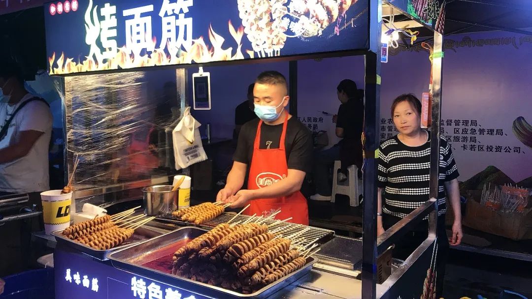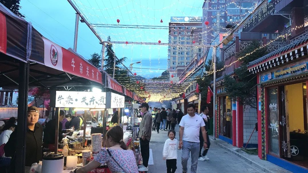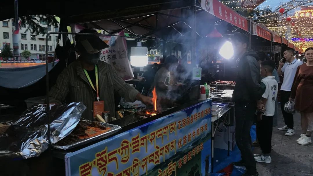 酸辣粉、牛杂关东煮、奥尔良烤鸡腿、烧烤、昌都牦牛肉、烤羊……在卓卓康巴美食街,不仅有来自各地的风味小吃,也有地道的昌都美味。
