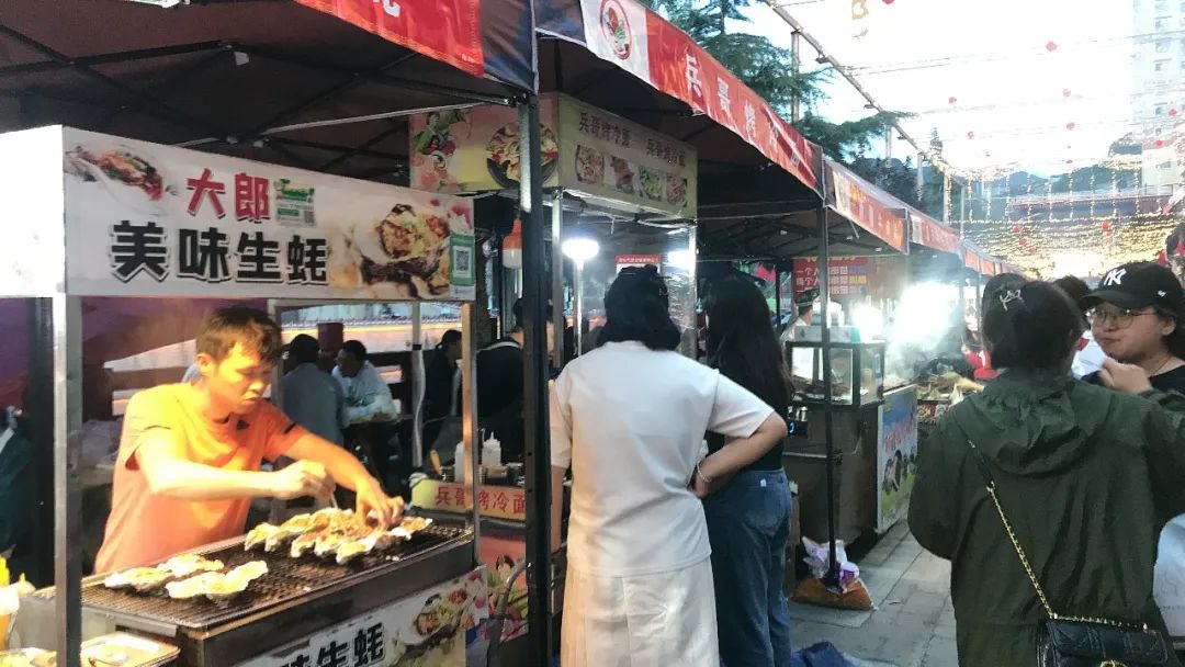 天津广场滨河路,夜幕降临,各路商家开始云集,整齐摆开摊位,亮出种类繁多的特色美味,撸起袖子开始迎接八方宾客。华灯初上,拉开了夜生活的序幕,在灯光的照射下,炊烟腾起,尽显人间烟火气,微风吹过,香气四溢,吸引广大市民、游客纷至沓来、驻足消费、大快朵颐。