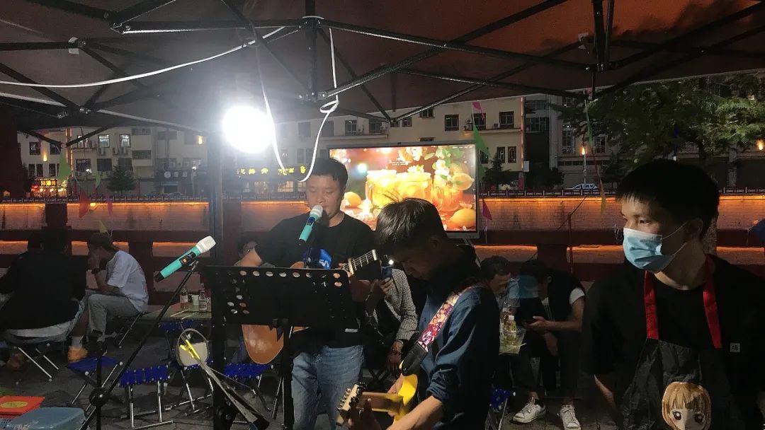 人潮中,除了烧烤声、炒菜声、叫好声、吆喝声、聊天声,也有悦耳动听的歌声!一群青年将音响设备、乐器也搬到了美食节现场,在大家的注目中,纵情放歌,歌声悠扬又豪放,表达着对美好生活的向往、对美丽昌都的祝福!