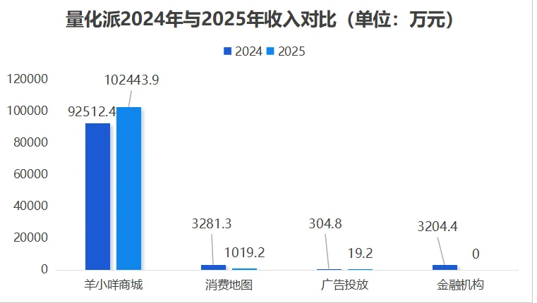 近日,量化派公布了上市后的首份年度业绩报告。财报显示,2025年全年收入10.35亿元同比增长4.2%;全年录得净溢利1.951亿元,同比增长32.6%。但这份看似稳健的增长,完全是前5个月业绩撑场面的结果。2025年1—5月,量化派就已实现1.26亿元的净利润,占全年净利润的64.58%,五个月便完成全年大部分的盈利。日赚约84万元,盈利势头十分强劲。而进入后期,量化派盈利能力急剧缩水。2025年的后7个月仅赚6910万元,约为前5个月盈利的一半,日赚约33万元,盈利能力接近腰斩。再看量化派的收入结构。2025年羊小咩收入10.244亿元,占总营收比例高达99.0%,较2024年的93.2%进一步提升;消费地图汽车零售O2O平台收入从3281万元暴跌至1019万元,同比下滑68.9%;广告投放业务收入从305万元骤降至19万元,同比下滑93.7%;金融机构撮合服务收入直接归零,量化派称该业务已于2024年7月全面停止。羊小咩商城作为唯一收入支柱,全年GMV突破100亿元,同比增长30.59%,较2022年飙升400%;商城月均活跃用户92万人,次月复购率35.88%,同比提升5.82个百分点。但在黑猫投诉平台上,大量用户称羊小咩商城定价远超市场价,且在该平台只能使用便荔卡包额度。据计算,羊小咩商城的溢价幅度大约在15%—45%之间。更值得关注的是,量化派存在个人信息泄露问题。用户在注册使用羊小咩或便荔卡包后,手机号便会频繁收到个人号码发来的额度回收或套现短信。而量化派曾向新京报回应表示,羊小咩商城不存在高溢价的问题,亦未与回收平台合作。量化派是剥离便荔卡包相关借贷业务后才在港股上市,对外宣称已停止相关金融业务。但结合来自鹰潭广达应收账款的增加与穿透股权与人员关系后,就会发现实则关联从未切断。财报数据显示,量化派应收账款从2024年的6.384亿元飙升至2025年的9.786亿元,同比大增53.3%,核心增量来自对鹰潭广达小贷的应收款。量化派表示已获得明确还款计划,预计2026年底前收回全部款项,截至公告日已收回3亿元,占比29.2%。但数据显示,2025年7月公司应收账款为9.31亿元,结清1.22亿元,也就是此后几个月应收账款不减反增2.2亿元。股权与人员绑定关系更是明显。招股书显示,量化派创始人周灏在2025年4月就已出售量科邦的全部股权,鹰潭广达小贷与量科邦被视为独立第三方。但截至2026年3月30日,企查查的工商信息仍显示量科邦实际控制人为周灏。不仅如此,近期便荔卡包的运营主体北京自牧云创科技完成股东变更,由北京量科邦信息技术有限公司变更为北京燕鼎自牟科技有限公司。看似脱离量科邦,但其新股东北京燕鼎自牟的法定代表人吴庄,同时兼任北京量科邦的法定代表人、董事长及经理。业务层面同样换汤不换药。便荔卡包似乎仍在为羊小咩导流,原内置商城直接跳转羊小咩,现更名为便荔商城,界面、功能与羊小咩高度一致,且商品由量化派旗下北京宇动智能信息技术有限公司提供,关联链条清晰可见。量化派执行董事及首席技术官周强和非执行董事刘方未女士均由于职业发展计划变动及个人原因辞任。与此同时,任命张岩珅为公司执行董事兼首席运营官,任命谭丰为公司执行董事兼首席技术官。首席运营官张岩珅两度加入量化派。在2024年1月至8月,首次加入量化派担任策略经理,负责集团电商业务的整体战略发展。2025年12月,张岩珅重新加入量化派担任副总裁,同时为量子数科科技有限公司的首席运营官。公告显示,张岩珅拥有量化派606060股股份的权益,占已发行股份总数约0.12%,基本年薪为120万元。新任首席技术官谭丰为清华大学学士、麻省理工机器人学博士,重点研究核心机器人技术。目前未持有公司股份,基本年薪150万元。