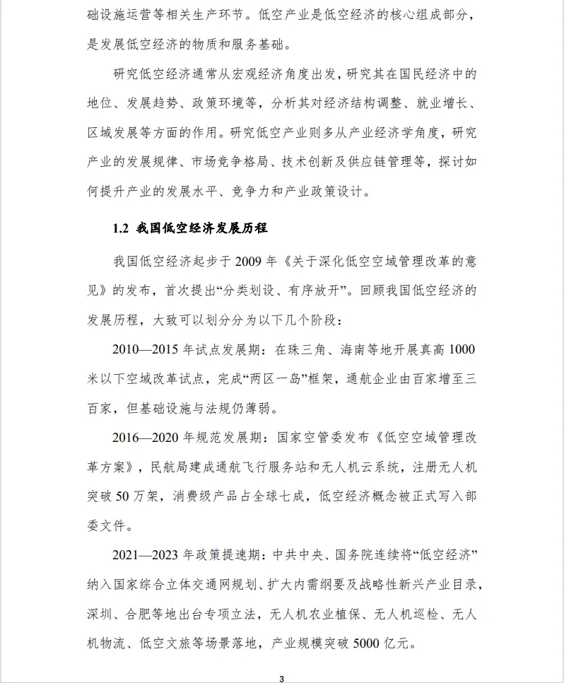 我国低空经济的发展始于2009年《关于深化低空空域管理改革的意见》的发布,明确提出“分类划设、有序放开”的原则。此后,低空经济经历了多个发展阶段: