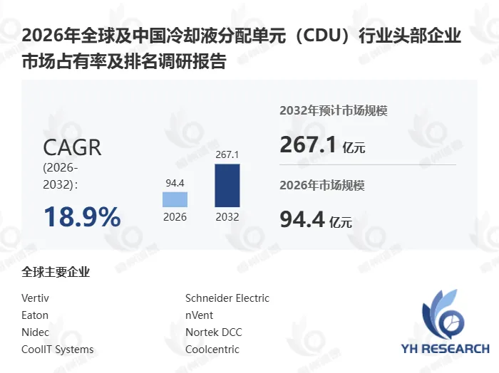 根据YH恒州诚思信息咨询调研统计,2025年全球冷却液分配单元(CDU)市场规模约71.28亿元,预计未来将持续保持平稳增长的态势,到2032年市场规模将接近267.1亿元,未来六年CAGR为18.9%。