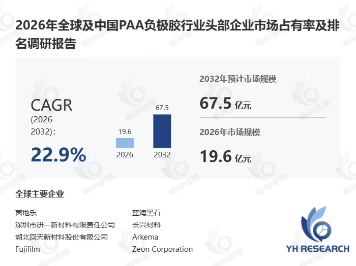 根据YH恒州诚思信息咨询调研统计,2025年全球PAA负极胶市场规模约15.55亿元,预计未来将持续保持平稳增长的态势,到2032年市场规模将接近67.53亿元,未来六年CAGR为22.9%。