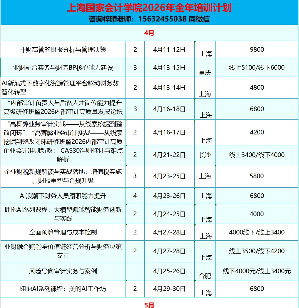第1期 | 4月11日-12日 | 4月10日 | 上海国家会计学院 |