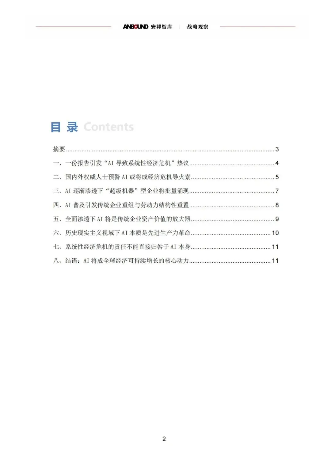 今天,“安邦战略研究报告”栏目发布报告《AI 会导致系统性经济危机吗?》。