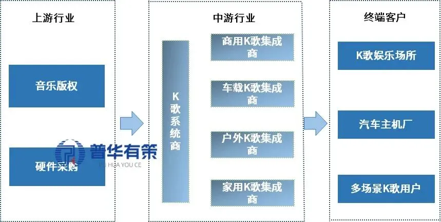 KTV系统行业的产业链主要包括上游的硬件元器件供应商与音乐版权内容提供商,中游的智能娱乐系统及终端设备制造商,以及下游的K歌娱乐场所与终端消费者。