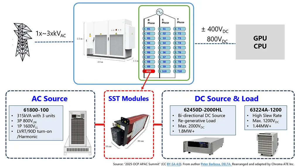 在英伟达定义的AI数据中心(AIDC)供电架构中,SST是连接电网与算力芯片的枢纽,解决了传统多级变换导致的效率损耗问题,相比传统方案,其体积缩小,响应速度提升,成为支撑800V高压直流(HVDC)系统的核心技术。