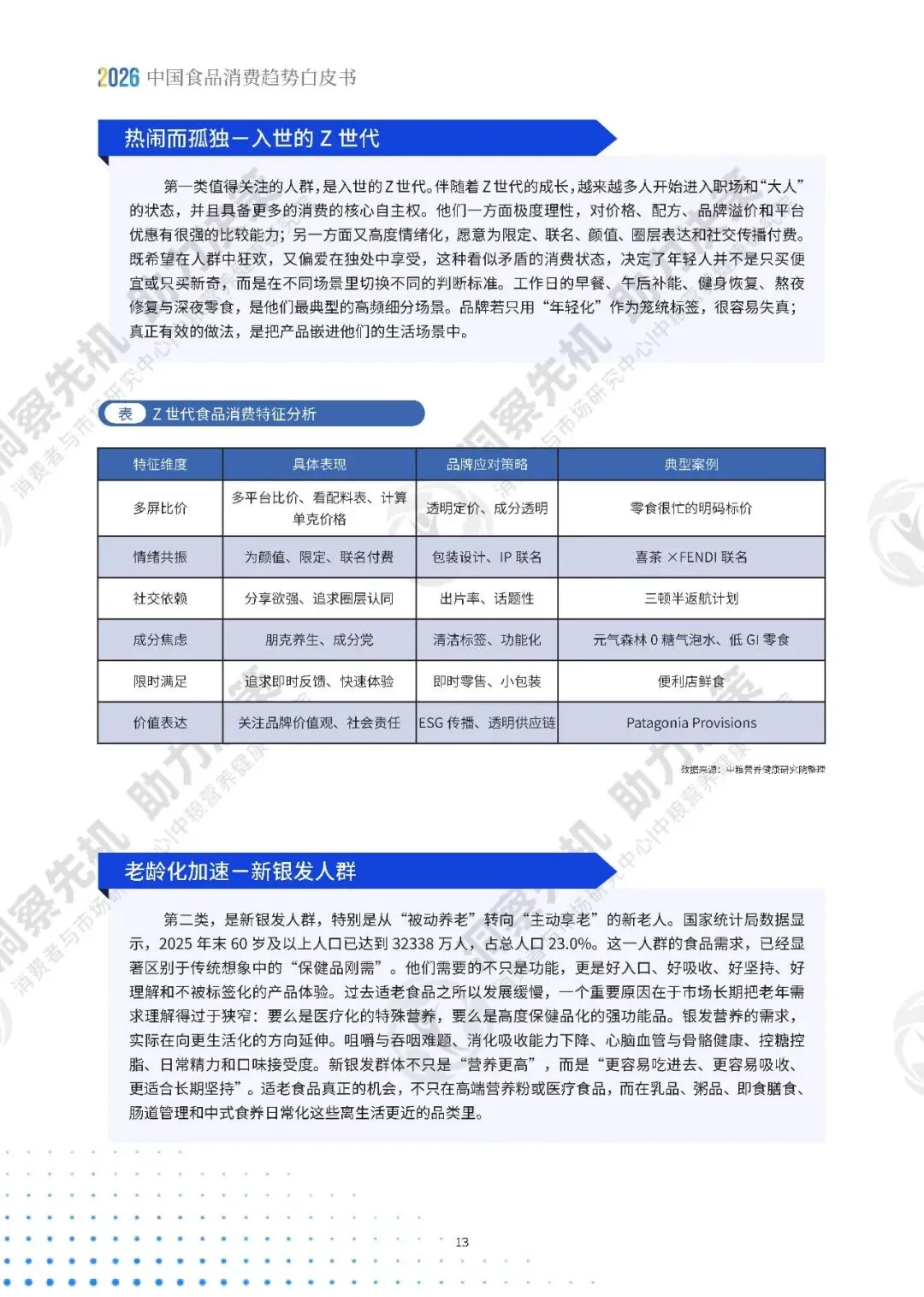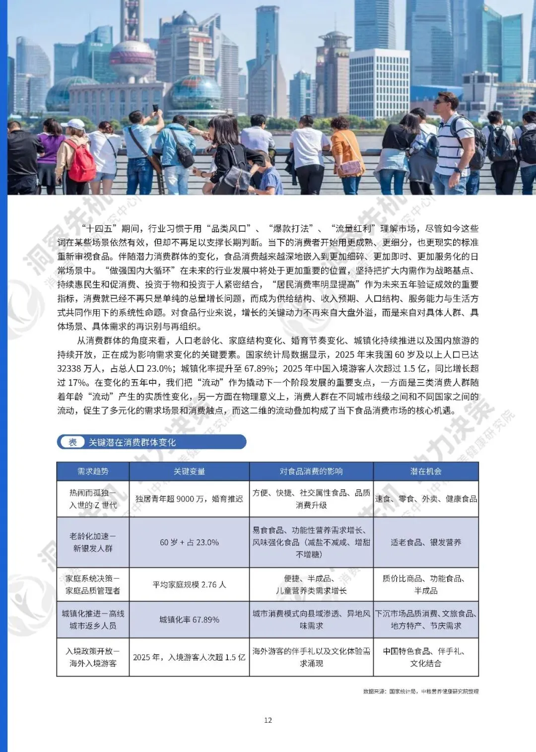 人口结构的流动,正在重塑食品消费的基本盘。入世的 Z 世代在理性比价与情绪消费之间反复切换,新银发人群对食品的需求从医疗化的强功能,转向好入口、好吸收的日常化营养,家庭品质管理者把采购效率放在首位,城乡流动的人群让高线与县域的消费边界不断模糊,入境游客则让中国食品有了文化传播的新属性。没有一套通用的消费公式能适配所有人群,精准匹配场景,成了产品创新的第一前提。