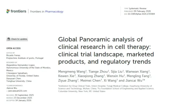 近日,华中科技大学同济医学院附属协和医院药物临床试验机构的研究团队在国际期刊《Frontiers in Pharmacology》发布了一项全球细胞治疗临床研究的系统性综述成果。
