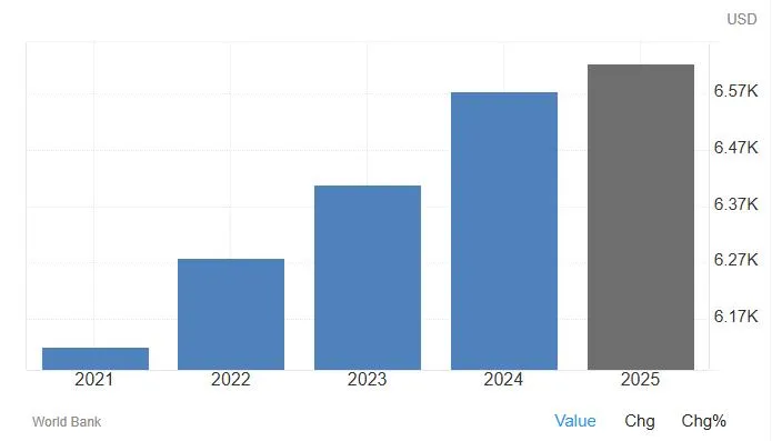泰国是中上收入国家,是东盟仅次于印度尼西亚的第二大经济体,但目前经济增长乏力。自2020年因新冠影响泰国生产总值出现大幅负增长后,2021年至2024年泰国GDP一度实现稳定增长。2024年GDP增长2.5%,达5263亿美元,当年泰国出口总额首超3000亿美元至3005亿美元。然而,2025年,泰国经济增长显著放缓,泰国央行预测全年增速为2.2%,其中第三季度GDP同比仅增长1.2%,创下近四年最低水平。