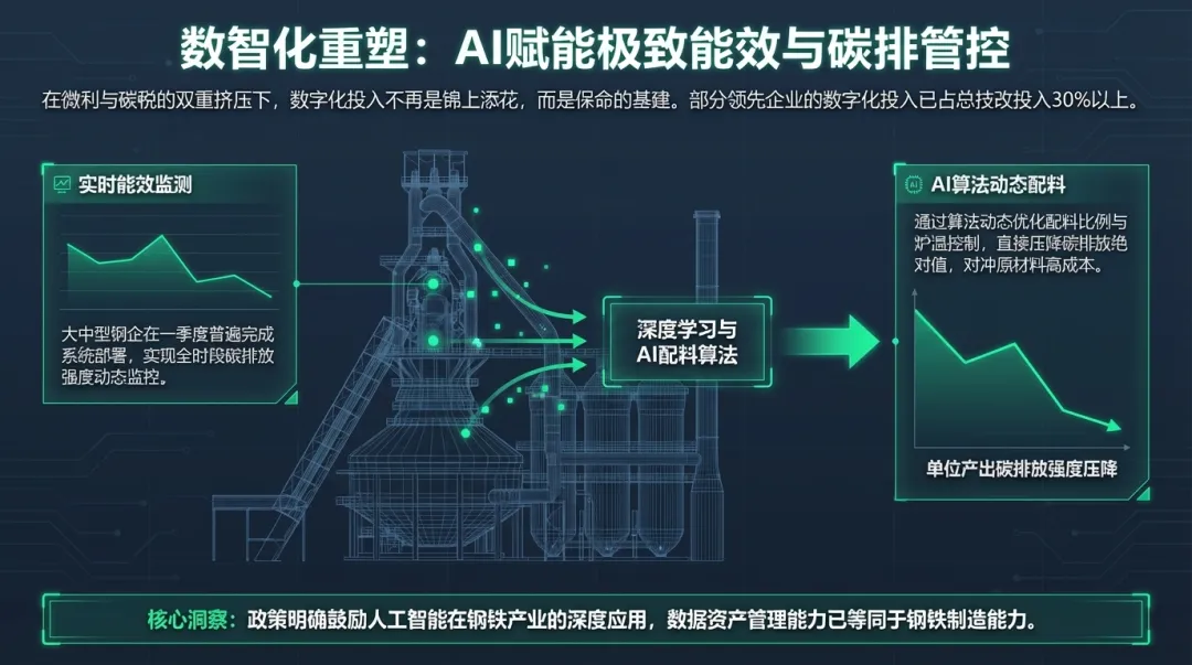- 应用场景 :一季度,大中型钢企普遍完成了实时能效监测系统的部署,通过AI算法优化配料比例,降低单位碳排放强度。