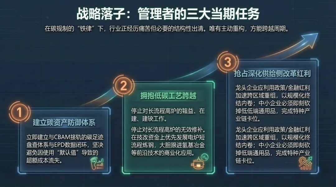 - 拥抱低碳工艺转型 :优先发展电炉短流程炼钢,加大对氢基冶金等前沿技术的试验与投入。