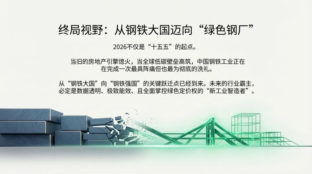 2026年不仅是“十五五”的起点,更是中国钢铁工业从“钢铁大国”向“钢铁强国”及“绿色钢厂”转变的关键跃迁点。
