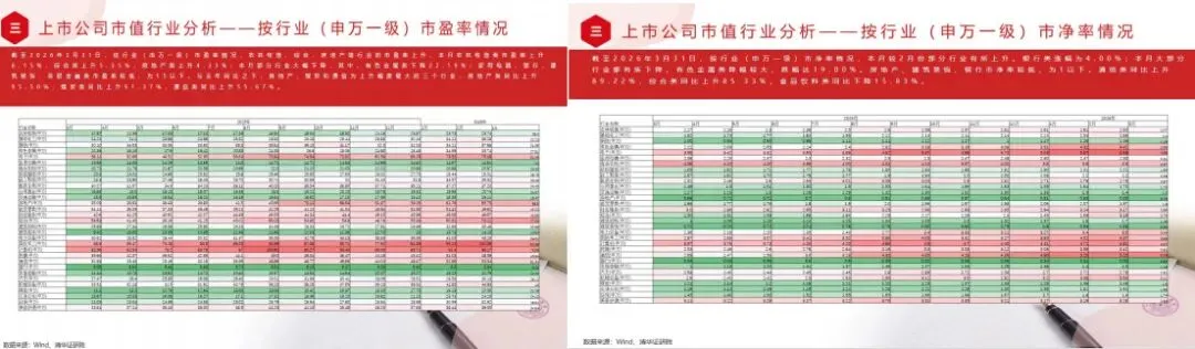 按行业(申万一级)分类,分析各板块占比最大行业,总市值(含A股、B股、H股)中,银行类市值15.21万亿元,占比12.39%;上交所主板,银行类市值14.66万亿元,占比22.39%;深交所主板,电子类市值2.64万亿元,占比10.94%;科创板,电子类5.90万亿元,占比50.95%;创业板,电力设备类3.88万亿元,占比21.74%;北交所,机械设备0.14万亿元,占比18.04%。相较于2月份,煤炭类市值占比上升(+5.50%)、公共事业类(+3.02%),钢铁类大幅下降(-14.50%)。按行业(申万一级)分类,公司数量分布,全部公司中,汽车类较2月增加3家,电子、有色金属、基础化工类较2月增加2家;上交所主板,基础化工139家;深交所主板,基础化工128家;科创板,电子类155家;创业板,机械设备191家;北交所,机械设备类64家。按行业(申万一级)分类,总市值(A股含限售股)中,电子类市值13.33万亿元,占比12.29%,蝉联首位,市值较2月(15.26万亿元)下降12.64%;其次是银行类,市值10.74万亿元,较2月(10.12万亿元)上升6.09%,占比9.90%;第三为电力设备类,市值8.72万亿元,占比8.04%。与2月份相比,煤炭类上升8.06%,公共事业类也有2.92%的涨幅。按行业(申万一级)分类,总上市公司数量(A股含限售股)5485家中,排名前三的行业为:机械设备类、医药生物类和电子类。其中,机械设备类597家,占比10.86%;医药生物类505家,占比9.19%;电子类497家,占比9.04%。较2月份,多个行业公司数量有所增加,汽车类本月增加3家,商贸零售、基础化工、有色金属、电子类各增加2家。按行业(申万一级)市盈率情况,农林牧渔、综合、房地产等行业的市盈率上升,本月农林牧渔类市盈率上升6.15%,综合类上升5.35%,房地产类上升4.33%;本月部分行业大幅下降,其中,有色金属类下降22.19%;家用电器、银行、建筑装饰、非银金融类市盈率较低,为15以下。与去年同比之下,房地产、煤炭和通信为上升幅度最大的三个行业,房地产类同比上升95.50%,煤炭类同比上升91.37%,通信类同比上升55.67%。按行业(申万一级)市净率情况,本月较2月份部分行业有所上升。银行类涨幅为4.00%;本月大部分行业都有所下降,有色金属类降幅较大,跌幅达19.00%。房地产、建筑装饰、银行市净率较低,为1以下。通信类同比上升89.22%,综合类同比上升85.33%,食品饮料类同比下降15.83%。
