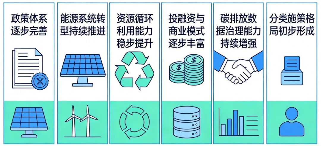 中国零碳园区建设在政策体系完善、能源系统转型、资源循环利用、投融资创新、数据治理及分类施策等方面取得显著进展。国家层面明确建设目标与核心指标,地方结合资源禀赋开展差异化探索,如江苏盐城大丰港的绿电直供、内蒙古的“源网荷储”一体化等。