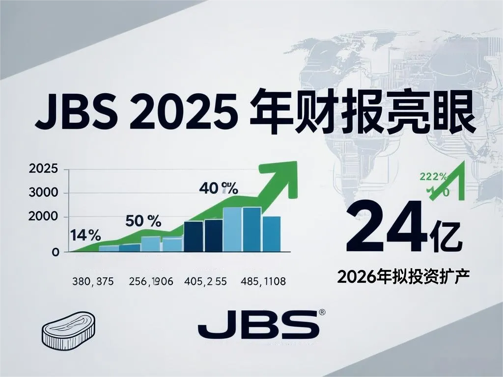 全球蛋白食品巨头 JBS 近日发布 2025 财年及第四季度财报,交出营收创历史新高、净利润稳健增长的成绩单。同时,公司明确 2026 年资本开支计划,将投入 24 亿美元聚焦内生扩产,暂放缓并购步伐,凭借全球多元化布局抵御市场波动,持续夯实行业龙头地位。