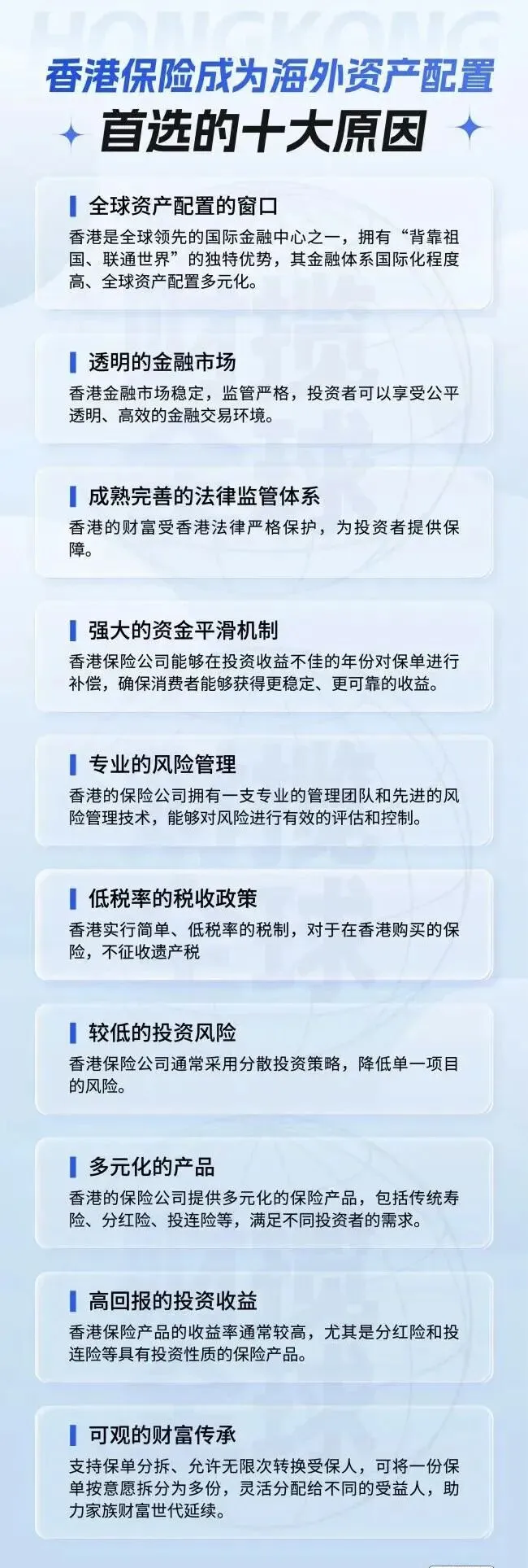 在这场大规模的财富配置浪潮中,香港保险成为了最亮眼的“蓄水池”。为什么是保险?因为对于内地高净值客户而言,他们追求的不仅是高收益,更是财富传承、税务规划和资产隔离的综合解决方案,而这正是香港保险的优势所在。
