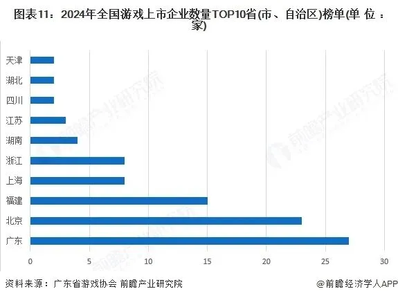 1、区域竞争:广东拥有最多游戏上市企业,北京次之
