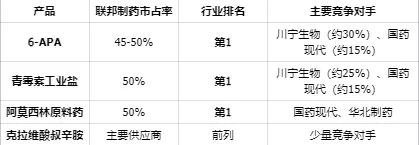注:6-APA与青霉素G钾工业盐共线生产,可灵活调整产出比例。(二)竞争对手分析