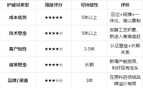 华北制药、鲁抗医药、哈药股份:传统抗生素企业,但在青霉素中间体领域份额较小(三)护城河分析