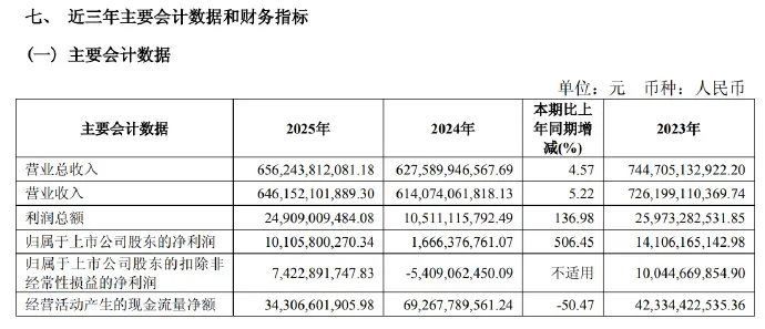4月3日,上汽公布了2025财报数据,净利润同比增长506.45%,这与2024年财务数据对比简直是打了一个漂亮的翻身仗,从急救室转入了普通康复,马上又是当年的状态了。上汽集团2025年报显示,营业收入6461亿元,同比增长5.22%,虽然营业额同比没有凶猛的增长,但是利润发生了凶猛的改变,开始挣钱了,净利润101亿元,同比增长506.45%,说明手里净落可支配收入翻了5倍,有钱了。经营活动产生的现金流量净额,发生了超50%的减少,从692亿元减少到了343亿元,虽然是减少了,但依然是正值。从营收和净利润来看,上汽的财务状况在改观,营业额在提升,净利润也发生了极大的改善,2024年净利润都支出去了,而2025年净利润获得了更多,有效的缓解了上汽集团的资金使用。关注上汽的朋友都知道,2024年上汽的净利润只有16亿元,比2023年下降了88.19%,近9成,简直是掏空了口袋,直接把脖子埋土里了。但上汽通过2025年一年的努力,又把净利润做回到101亿元,恢复了很大程度。要知道上汽2023年的净利润是141亿元,所以2025年净利润恢复的还是很快,相信通过2026年的恢复,就会达到2023年甚至表现的更好。2025年上汽为什么能翻身,这么快的反弹?这就是上汽新能源转型的成功,这一年上汽与华为合作品牌尚界产品上市开卖,订单量很不错!而且尚界第二款车Z7和Z7T也上市开卖了,反响都不错,订单量飙到很高。正是基于这样的动力,据外部消息,上汽正在和华为谈第三个境字辈品牌在上汽的落地,如果成真,这将为上汽的销量和财务改善起到很打作用。大型车企,转型稳妥,就会拥有很好的体系抗风险能力,加之外部力量加持,翻身反弹是很快的事。-End-