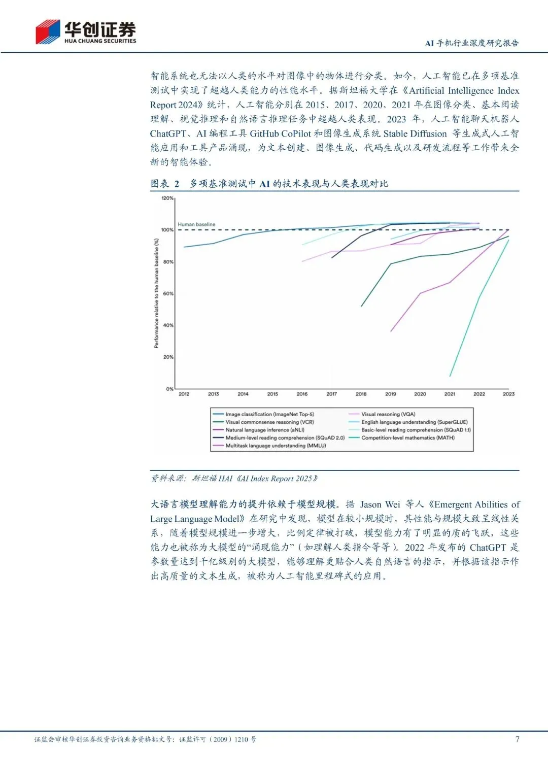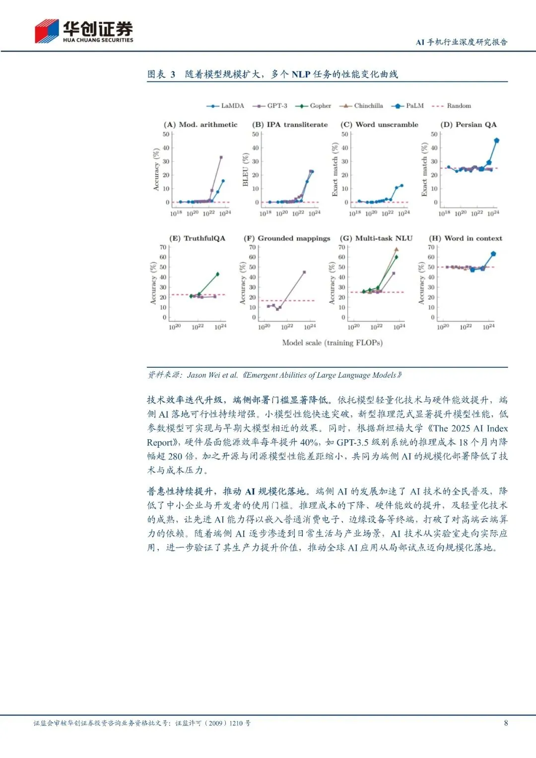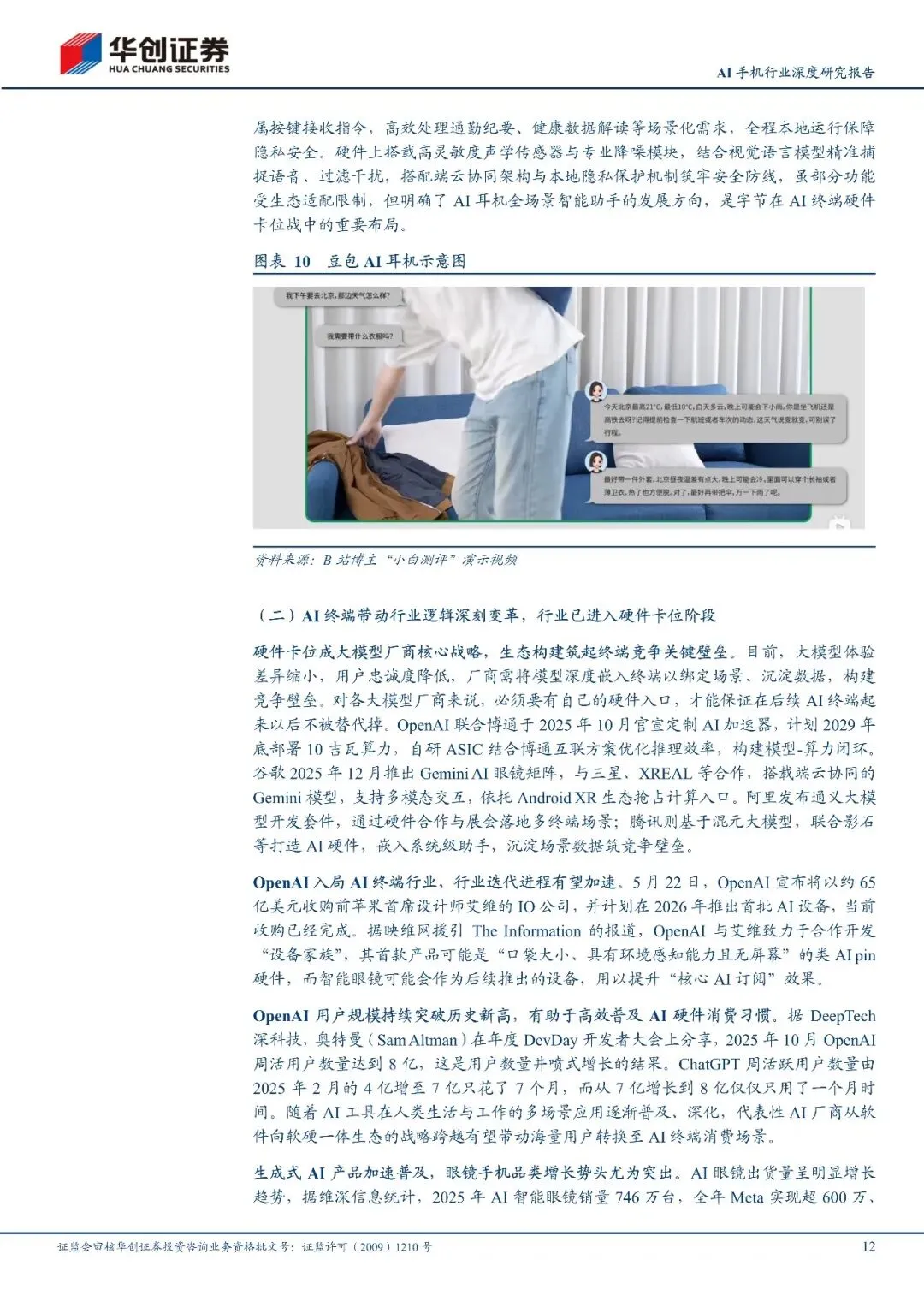 AI大模型迅速演进落地依赖终端,行业已进入硬件卡位阶段。大模型深度渗透各生活工作场景,头部模型用户规模与token调用量均高选增长,技术上已在图像分类、自然语言推理等多项基准测试中超越人类,模菜型规模扩大还催生了理解人类指令的"涌现能力"。同时模型轻量化、硬件能刻放提升让端侧AI部署门槛大幅降低,推理成本锐减,打破了对云端算力的依赖,推动AI技术规模化普惠落地。AIPC、AI眼镜、AI手机等终端新品频出,其中宇节跳动的豆包AI手机、olafriendAI耳机成为端侧AI标杆,实现本地智能交互与后台自动化操作。大模型厂商也将硬件卡位定为核心战略,OpenAI、谷歌、阿里、腾讯等科技巨头纷纷布局软硬一体生态,OpenAI收购IO公司入局马AI终端更加速了行业选代。目前AI终端品类增长势头强劲,2025年AI眼镜销量迎来爆发,生成式AI手机渗透率也持续提升,行业发展潜力巨大大。