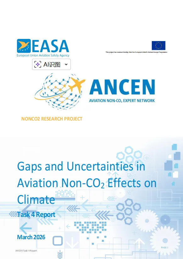2026年3月,欧洲航空安全局(EASA)委托航空非二氧化碳专家网络(ANCEN)编制,正式发布《航空非二氧化碳效应对气候影响的差距与不确定性》(Gaps and Uncertainties in Aviation Non-CO₂ Effects on Climate)第四任务报告。