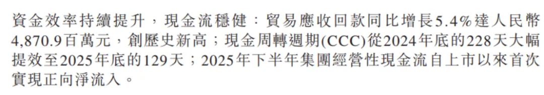 与此同时,亏损同比大幅收窄58.6%,连续四个半年加速减亏态势。集团资金效率持续提升,现金周转周期从228天缩短至129天。资金储备方面,截至2025年12月31日,公司拥有现金及现金等价物达109亿元及定期存款22.8亿元,较2024年底的88.88亿元及29.71亿元保持充裕水平,为长期发展提供了坚实的资金保障。现金流表现同样亮眼,下半年经营性现金流实现正向净流入,EBITDA同步转正至3.8亿元,企业自主造血能力已完全成型,过去主要依赖股东注资满足现金需求的模式已发生根本性转变。