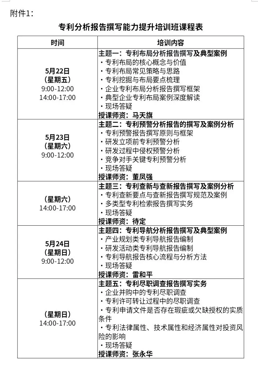 企业可通过专利情报分析,了解本技术领域中,哪些技术专利申请较集中,哪些技术的专利申请尚有空白点;留有空白点的技术是否有经济价值,对其进行技术研发的可行性及是否符合该行业的发展动向等问题,从而帮助企业做出最终研发决定,避免无效投入和开发的盲目性。专利分析报告是专利分析的最终成果之一,报告撰写要避免面面俱到确没有深入挖掘,专利分析报告的形成需要经过多次推敲和论证,最后形成一份能充分展示课题研究成果并得到认可的专利分析报告。为此,本平台将于2026年5月22日至24日在北京市举办“专利分析报告撰写能力提升培训班”。
