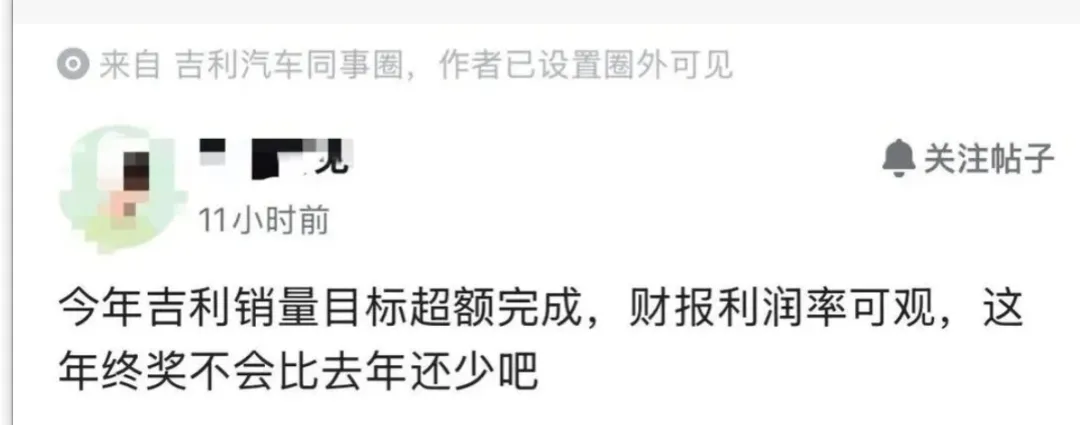 吉利员工吐槽,公司销量超目标完成,财报美观,难道年终奖还会比去年少?