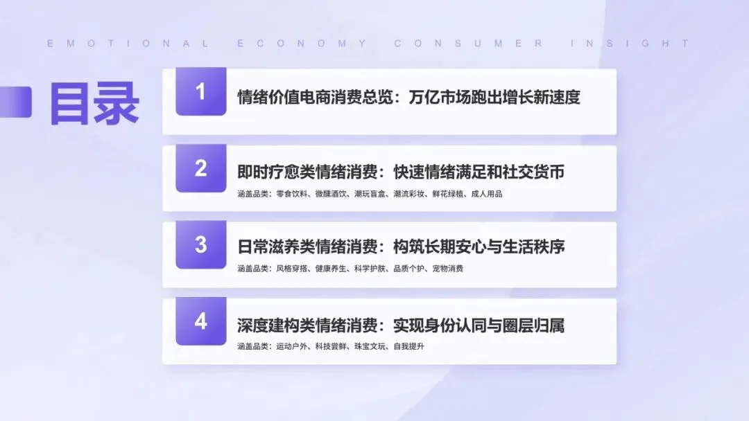 整个情绪消费市场,被清晰地划分成了三个层级。即时疗愈类消费,靠着决策轻反馈快的特点,撑起了 2200 亿以上的市场规模,同比增长 21%。日常滋养类消费,靠着构筑长期安心与生活秩序的核心价值,成为市场的绝对基本盘,规模突破 9000 亿元,同比增长 26%。而增速最快的,是深度建构类消费,市场规模超过 3100 亿元,同比增长率达到 45%。从即时的情绪满足,到长期的生活秩序,再到深层的身份认同,中国人的情绪消费,正在一步步走向更深的层次。