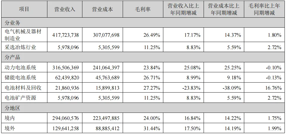 三、废料销售,第三名两者又一致了。这个我特意琢磨了一下它和主营业务中由邦普承接的“电池材料及回收”的区别,发现后者是以回收来的废弃材料为主,前者是自己生产过程中的废料与副产品,因此才会毛利比较高。而电池材料及回收毛利才27%。
