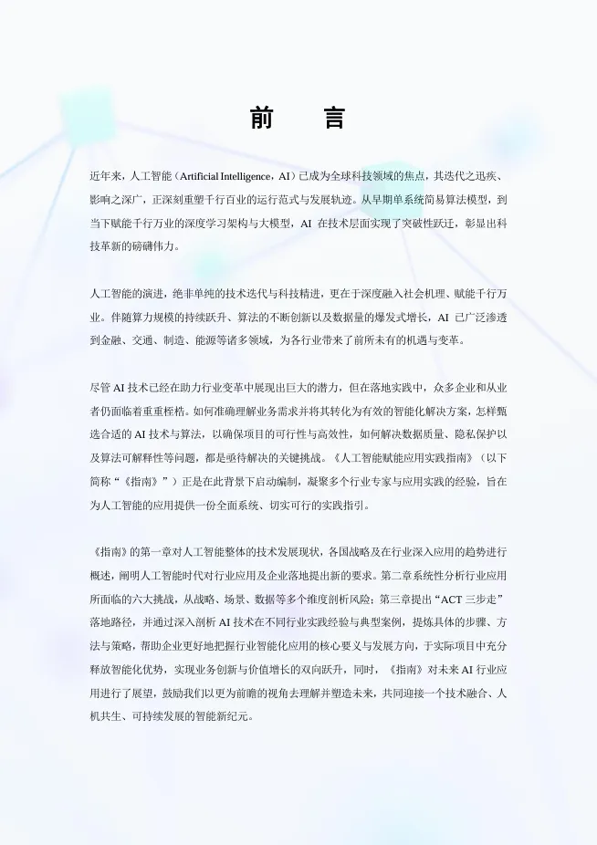 最后,《指南》展望了技术融合催生超级智能体、数据觉醒赋能行业原生AI、AI成为企业创新核心引擎、Agent重塑行业规则的未来图景,并强调复合型人才的广泛应用与“以人为本、智能向善”的发展主线,为企业在智能化时代把握战略主动提供了系统性的实践指引。