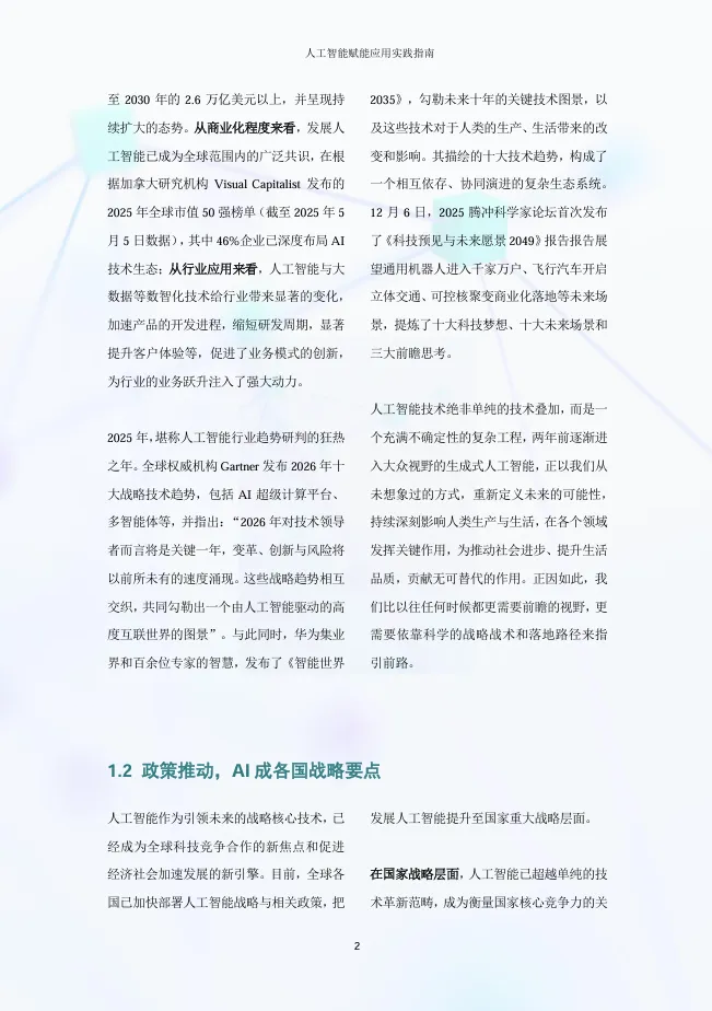 《指南》揭示,人工智能正从打破人机交互壁垒的对话式AI,迈向“主动思考”的深度推理,并演进至具备自主决策能力的智能体(Agent),在此背景下,全球170多个国家已出台AI战略,中国将“人工智能+”行动列为战略核心,推动AI进入全领域深度落地的战略转型期。