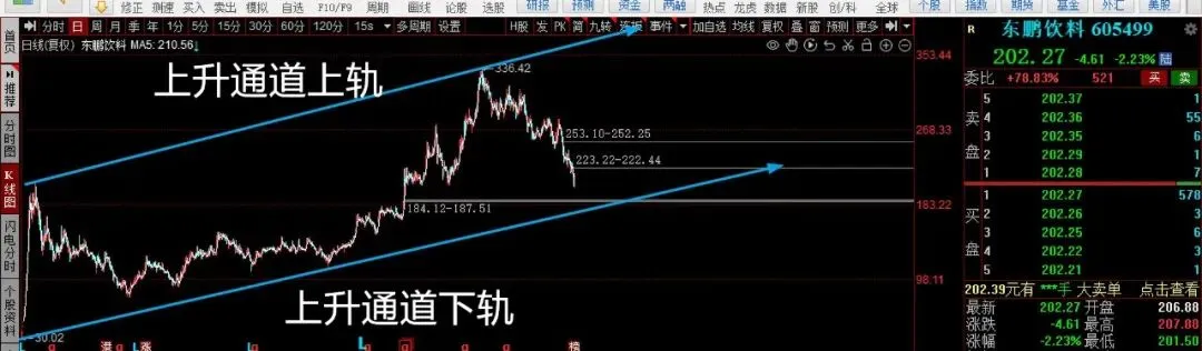 五、东鹏从上市以来就进入了一个巨大的上升通道,目前还处于上轨→下轨结构。所以,判断涨跌结构真的非常重要,如果你看好某只个股,尽量要买在下轨,卖在上轨。
