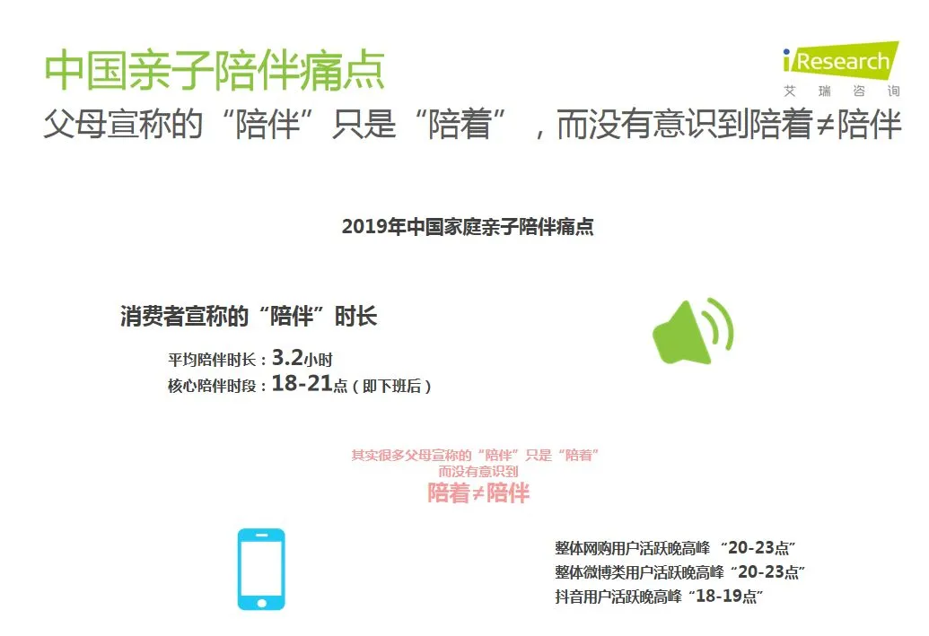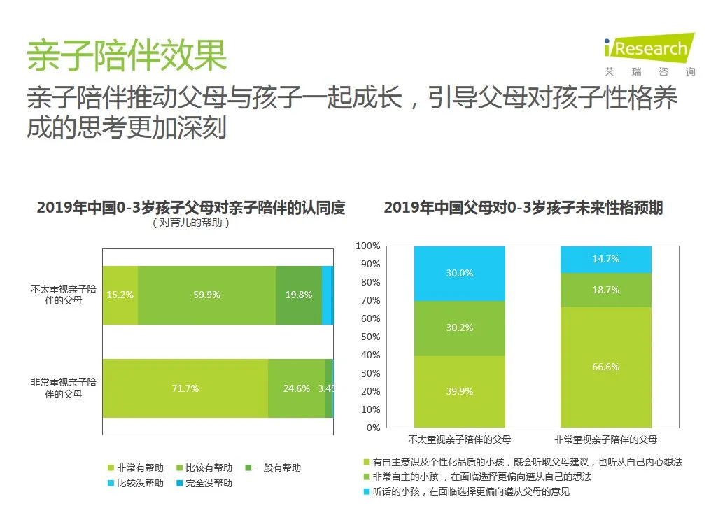 近日,针对中国亲子陪伴教育的问题,飞鹤&艾瑞咨询联合发布了《2019年中国亲子陪伴质量研究报告》。该报告对中国0-3岁宝宝们的亲子陪伴行为、陪伴效果、陪伴建议、陪伴技巧、陪伴痛点以及科学的陪伴方式指引都做了详细的分析和建议。