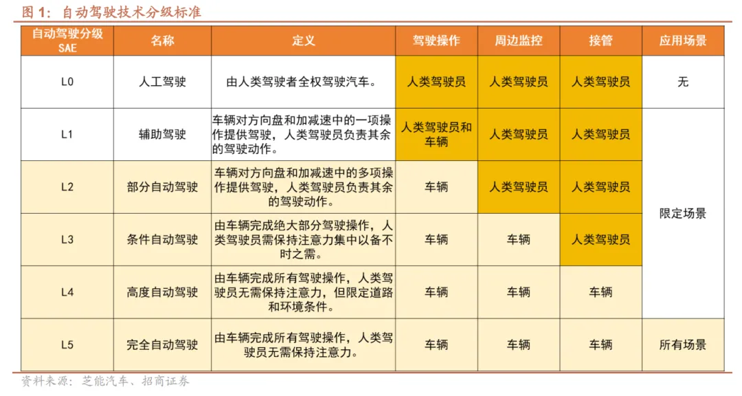 一、 高阶智驾加速渗透,Robotaxi 为 L4 典型应用