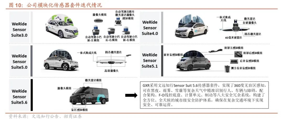 文远知行自研SensorSuite5.6 全新一代感知套件,快速迭代的设计和商业化标准确保了高度的可靠性和性能。文远知行模块化传感器套件包括GNSS、IMU、激光雷达、雷达、摄像头和定制传感器板,该套件通用超过90%的产品组件,确保为各类车型定制精准感知。公司全新一代传感器套件SensorSuite5.6采用低风阻流线型小巧设计,拥有高性能低成本激光雷达、高清高动态相机、RTK高精度组合惯导模块等在内的超20个传感器,可实现周围360°无盲区、前方200米无死角感知,覆盖高动态、低光照等极端场景。快速迭代的设计和商业化标准确保了高度的可靠性和性能。