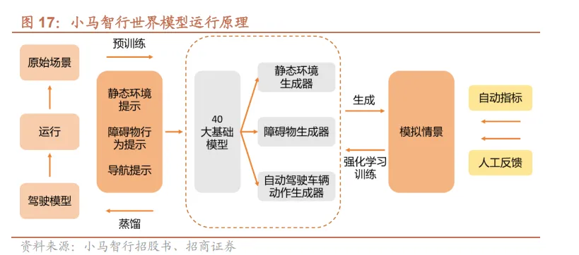 世界模型是一种教练式训练L4自动驾驶的方法。目前大多数自动驾驶解决方案均依赖于“观察学习”人类驾驶数据,本质上会让驾驶性能局限在人类驾驶员水平,而世界模型能够让L4自动驾驶系统在人工智能生成的场景中进行实践学习,训练L4智驾系统应对各种复杂场景。例如小马智行的PonyWorl 运用最新技术构建高保真虚拟环境,精准还原广泛真实世界交通场景的视觉细节与动态反应,供L4自动驾驶系统学习理解、适应并做出驾驶决策。通过使用PonyWorld回答各类假设性问题,赋予模型反复试错的能力,以便在现实中找到最优策略,在减少测试时间和相关成本的同时,显著提升安全指标。