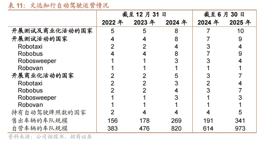 深度布局中东市场,目标清晰。截止2025年三季度,公司在中东投入的自动驾驶汽车约150辆,计划到2026年将中东地区Robotaxi车队扩充至500-1,000台,到2030 年扩充至数万台,为中东地区的规模化拓展奠定了坚实基础。