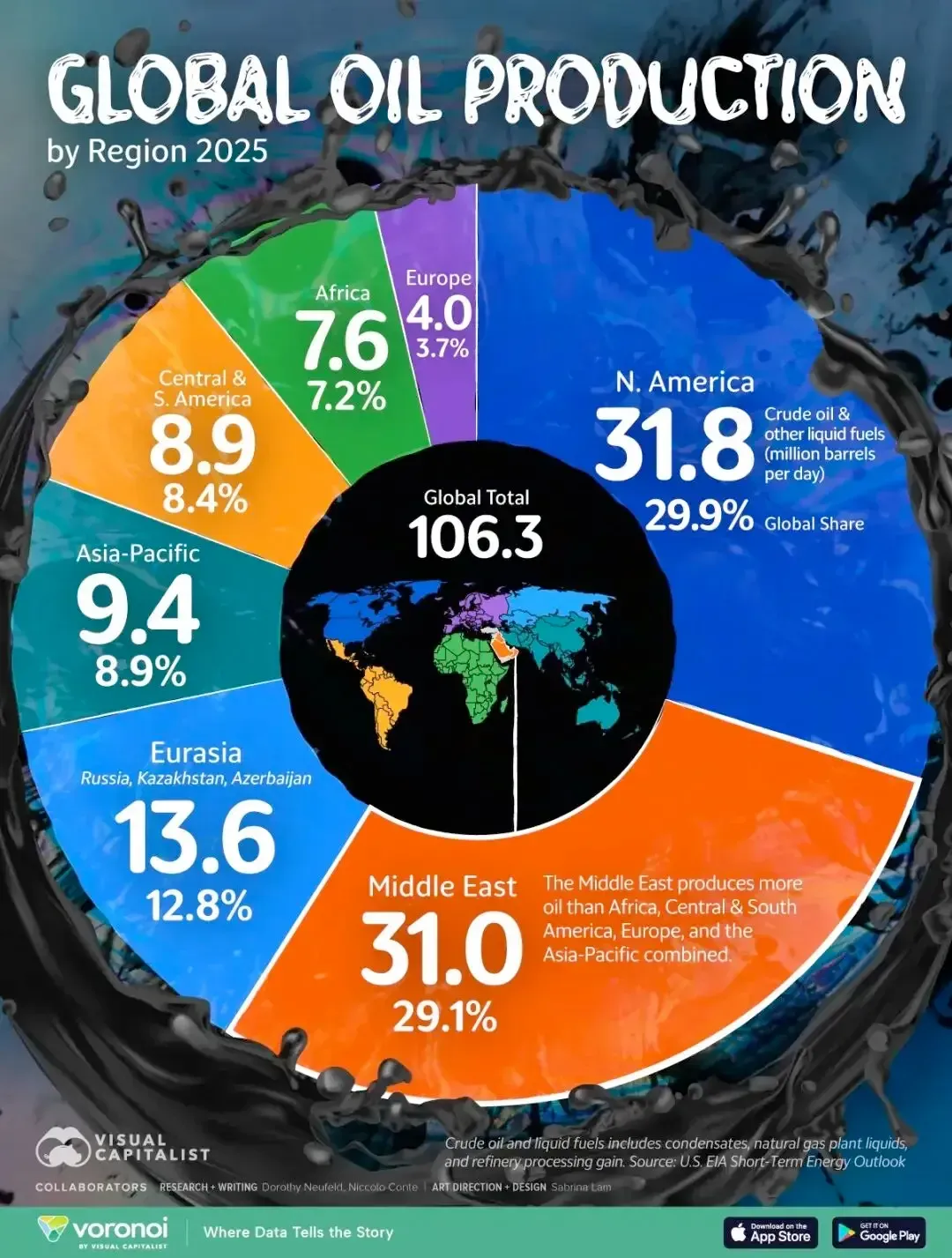 产量格局:北美与中东主导,美国创纪录