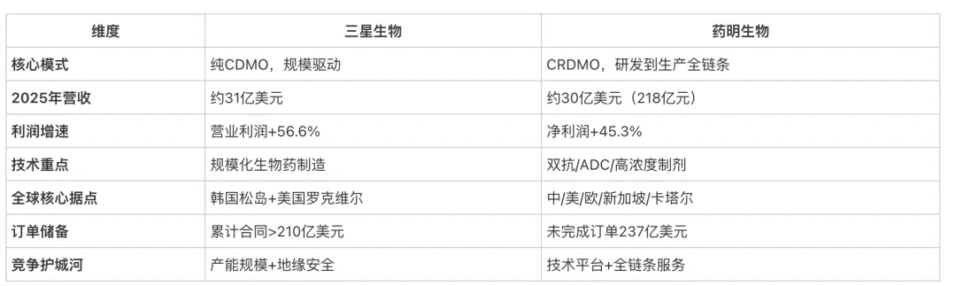 数据来源:三星生物2025年全年财报(2026年1月发布)、药明生物2025年全年业绩公告(2026年3月24日)、三星生物收购完成公告(2026年3月31日) 本文仅供行业信息参考,不构成任何投资建议。