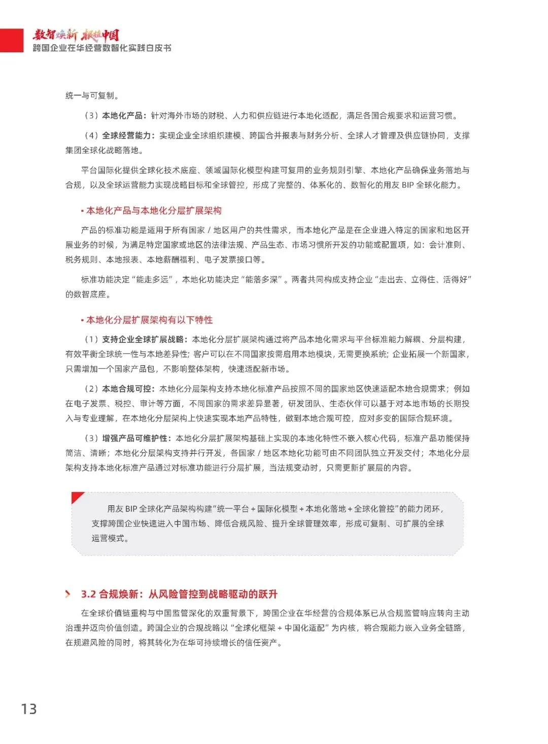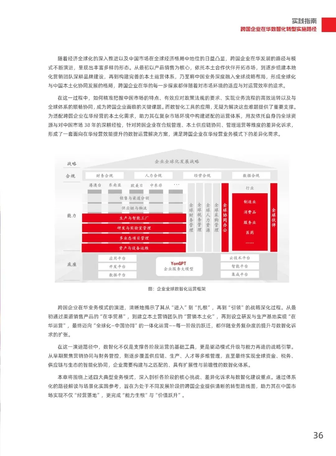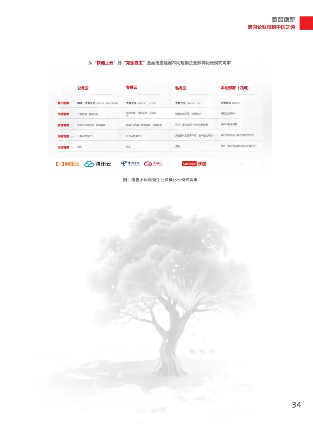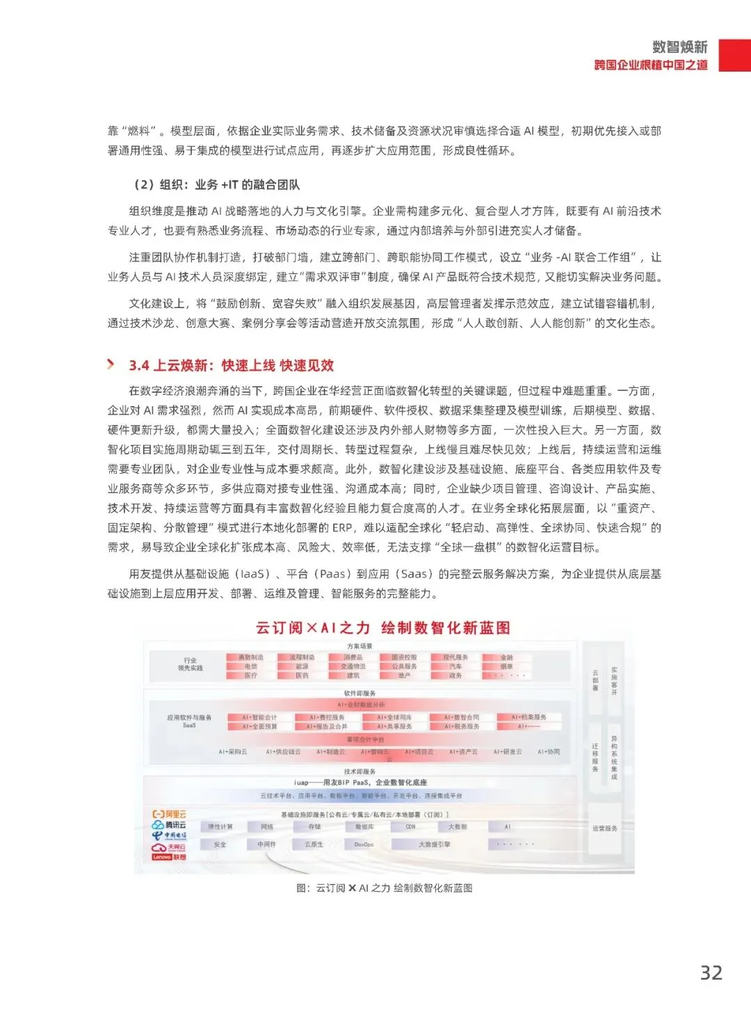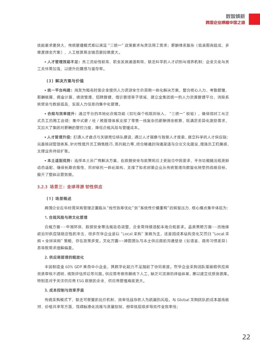 面对政策合规、技术适配、消费者行为差异等多重挑战,跨国企业需通过数智化转型提升韧性。白皮书提出四大转型路径:架构焕新,实现全球统一运营与本地深耕;合规焕新,从风险管控跃升至战略驱动;AI焕新,推动AI技术在核心业务落地;上云焕新,通过多样化云服务快速上线见效。