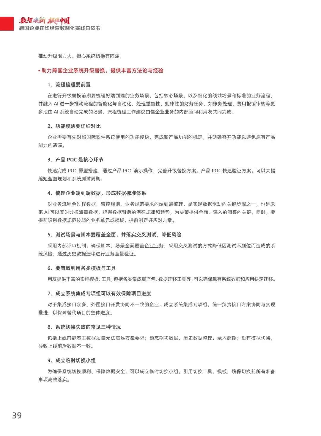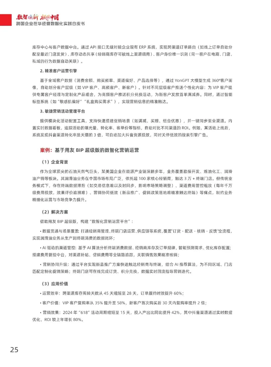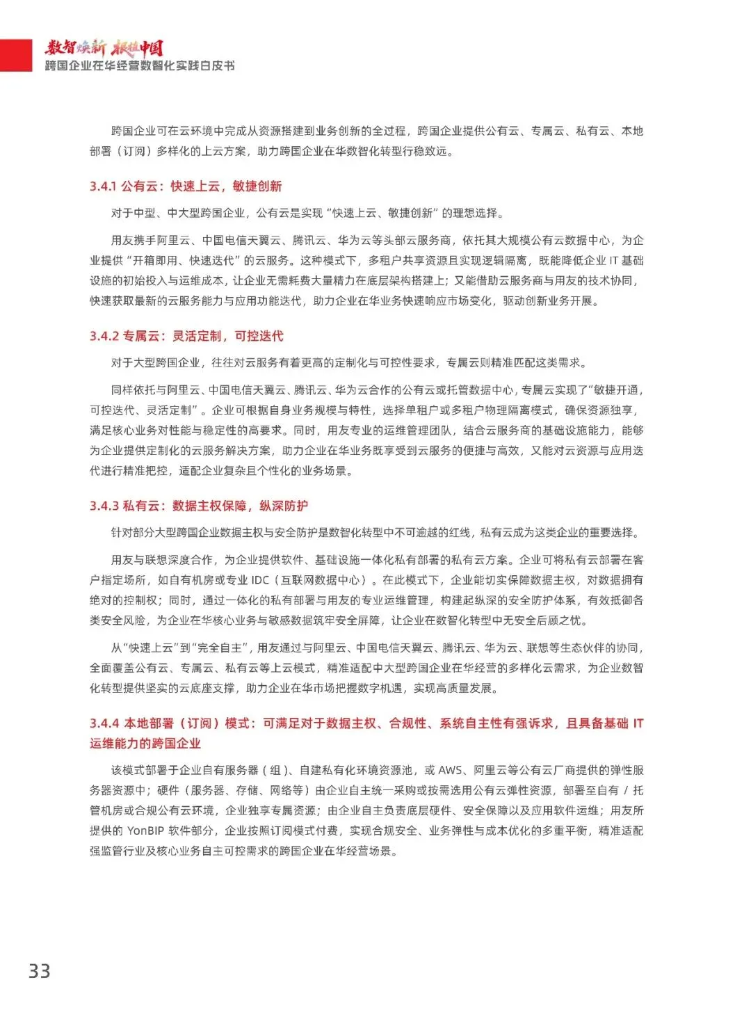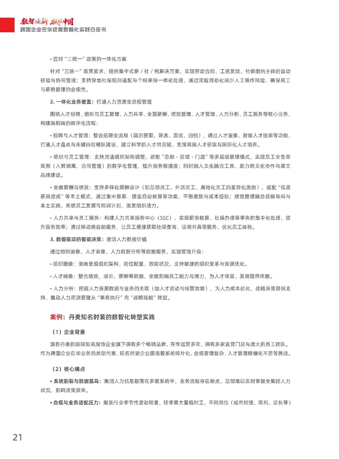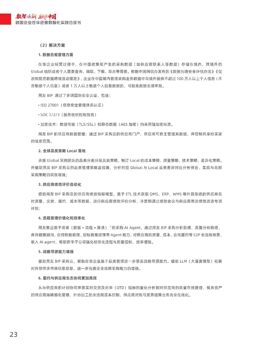 面对政策合规、技术适配、消费者行为差异等多重挑战,跨国企业需通过数智化转型提升韧性。白皮书提出四大转型路径:架构焕新,实现全球统一运营与本地深耕;合规焕新,从风险管控跃升至战略驱动;AI焕新,推动AI技术在核心业务落地;上云焕新,通过多样化云服务快速上线见效。