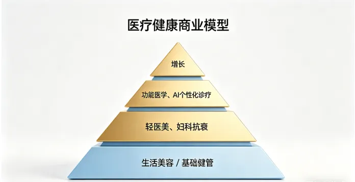 增长层:功能医学、亚健康调理,是第二曲线,AI个性化诊疗。