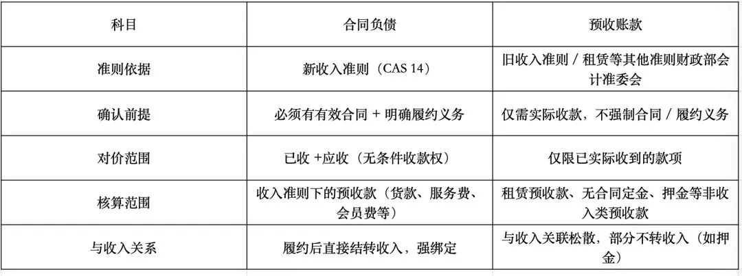 以前老叫法:预收账款(笼统收钱) 现在新叫法:合同负债(有合同、有正经订单的预收款)