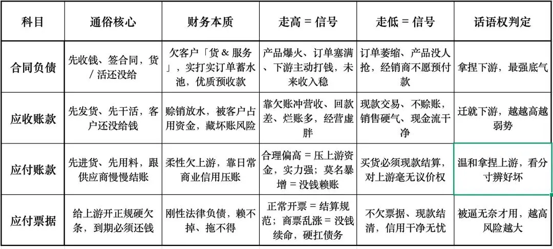 ✅ 合同负债高 + 应收极低 + 应付合理 + 票据极少两头吃:先收客户定金锁订单,正常压供应商账,不赊货、不打硬欠条;现金流炸裂,订单爆满,全行业最强话语权。