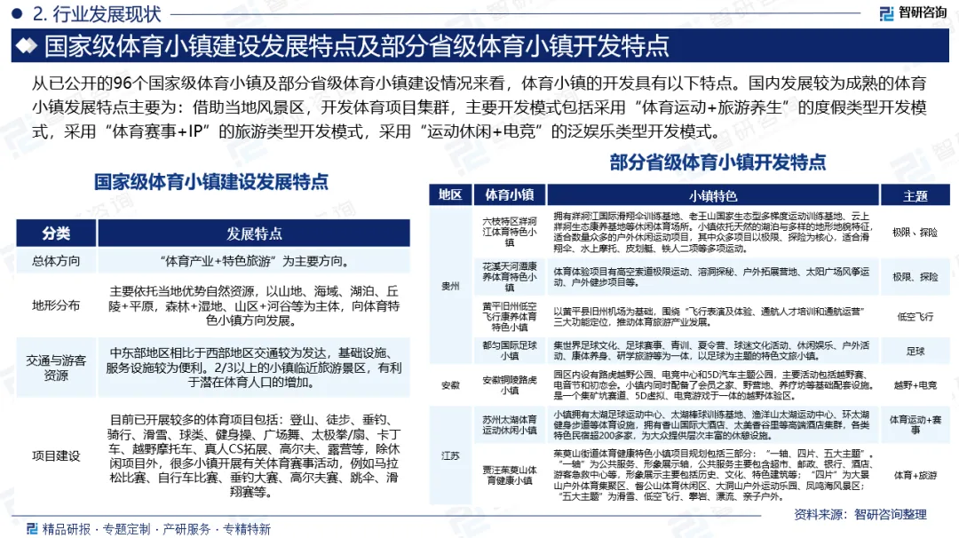 市场趋势:(1)体育小镇将从单一运动设施聚集区向“体育+文旅+康养”的融合体验目的地转变;(2)随着物联网、大数据及虚拟技术的应用,体育小镇将逐步构建智慧化管理与服务体系;(3)未来体育小镇建设将更强化生态保护与低碳理念的贯穿。